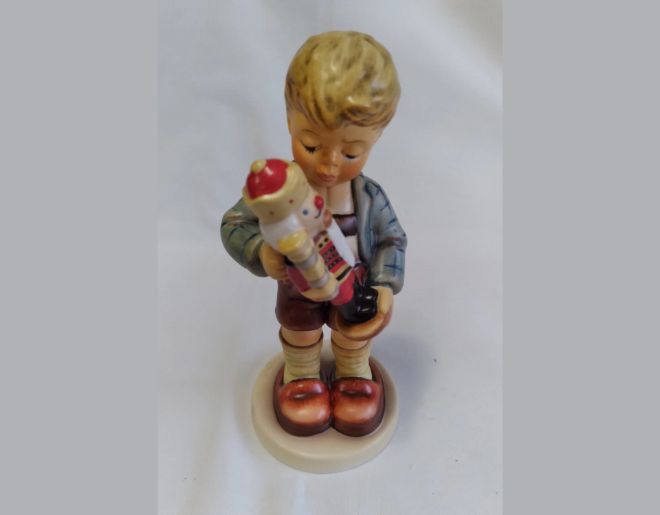 This figure is carved from beech wood and hand painted with soft hues. Goebel became known for figures that feel friendly and familiar. This nutcracker has been shown in holiday exhibits and family displays alike. Many owners pass on stories of finding one in a market or small shop. It remains sought after by those who enjoy vintage seasonal keepsakes.