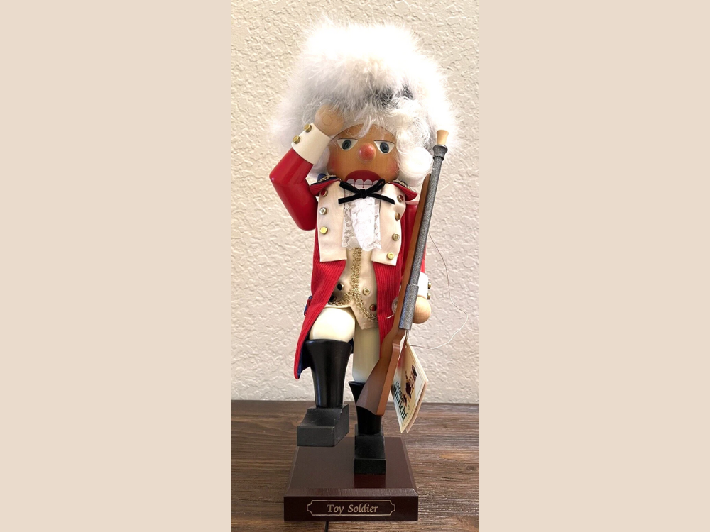 The wood holds colors that remain rich after many years. Collectors treasure how he stands with a proud expression. His size makes him a key piece in a display. Steinbach figures are appreciated for their lively looks. He feels at home among wreaths and ribbons.