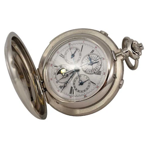 Introduced in 2013, the Audemars Piguet Grand Complication is a stunning timepiece featuring an impressive array of complications, including a perpetual calendar, minute repeater, and split-seconds chronograph. Its mechanical design is unusual because it combines multiple complex features into a single pocket watch, showcasing the brand’s exceptional engineering. Powered by the Caliber 2885 movement, the watch offers a 40-hour power reserve. Priced at around $1,500,000, it remains one of the most sophisticated pocket watches in the world. The Grand Complication represents Audemars Piguet’s mastery of traditional watchmaking.