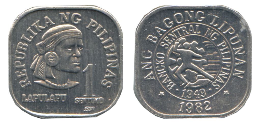 Issued starting in 1979, the Philippines 1 sentimo coin uses a square shape with rounded corners. The shape stands out due to the coin’s small size. Prices usually range from $1 to $6. Uncirculated pieces may sell for more. It works well in Southeast Asia-themed sets.