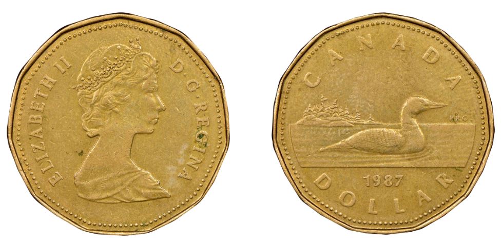 Canada released the 1 dollar loonie in 1987 with an 11 sided outline that looks round at first glance. The edges become noticeable once the coin is examined closely. Circulated examples often sell for $1 to $3. Higher grade coins may bring higher prices. The shape helped reduce confusion with other denominations.