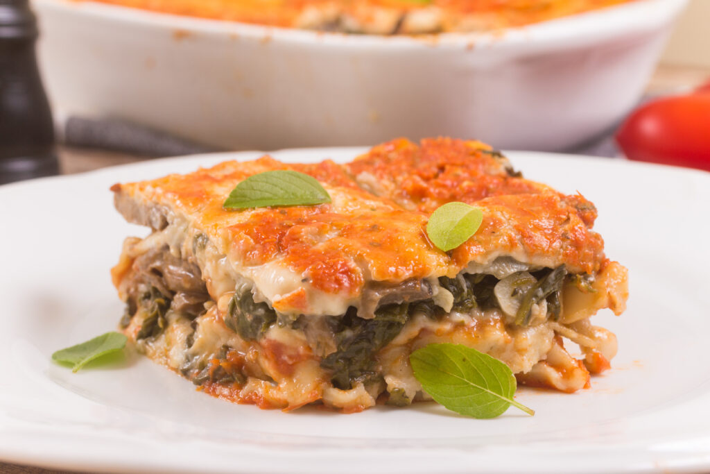 Mix pumpkin with nutmeg and ricotta. Layer noodles with pumpkin mixture, spinach, and mozzarella. Bake at 375°F (190°C) for 35–40 minutes until bubbly. Prep time: 20 minutes. Cook time: 40 minutes.