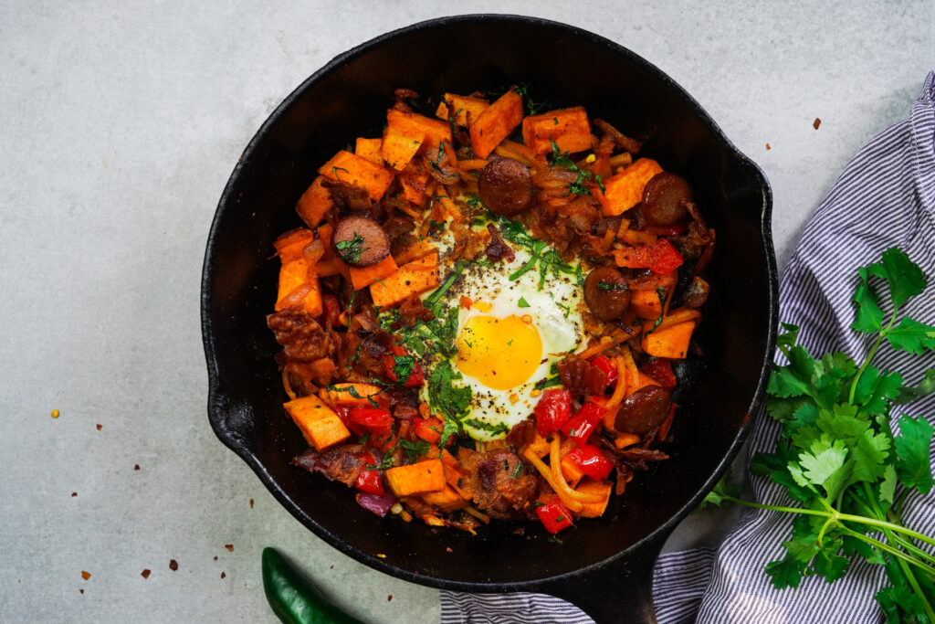 This one-pan meal brings together sausage, sweet potatoes, and onions for a colorful, filling dinner. The mix of savory sausage and sweet vegetables makes every bite balanced and rich. Add a handful of spinach for freshness. It’s fast, simple, and hearty.