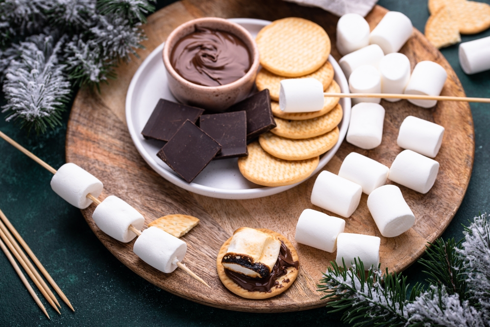 The s’mores board offers guests the chance to indulge in one of fall’s most comforting treats with an autumn twist. The variety of chocolate and toppings lets people experiment with new flavors while keeping the classic s’mores fun intact. By adding nuts or caramel for extra richness, this board appeals to both the traditionalist and the adventurous eater. The cozy decorations, like mini pumpkins or lanterns, enhance the fall vibe, turning a simple snack into a memorable fall activity for guests of all ages.