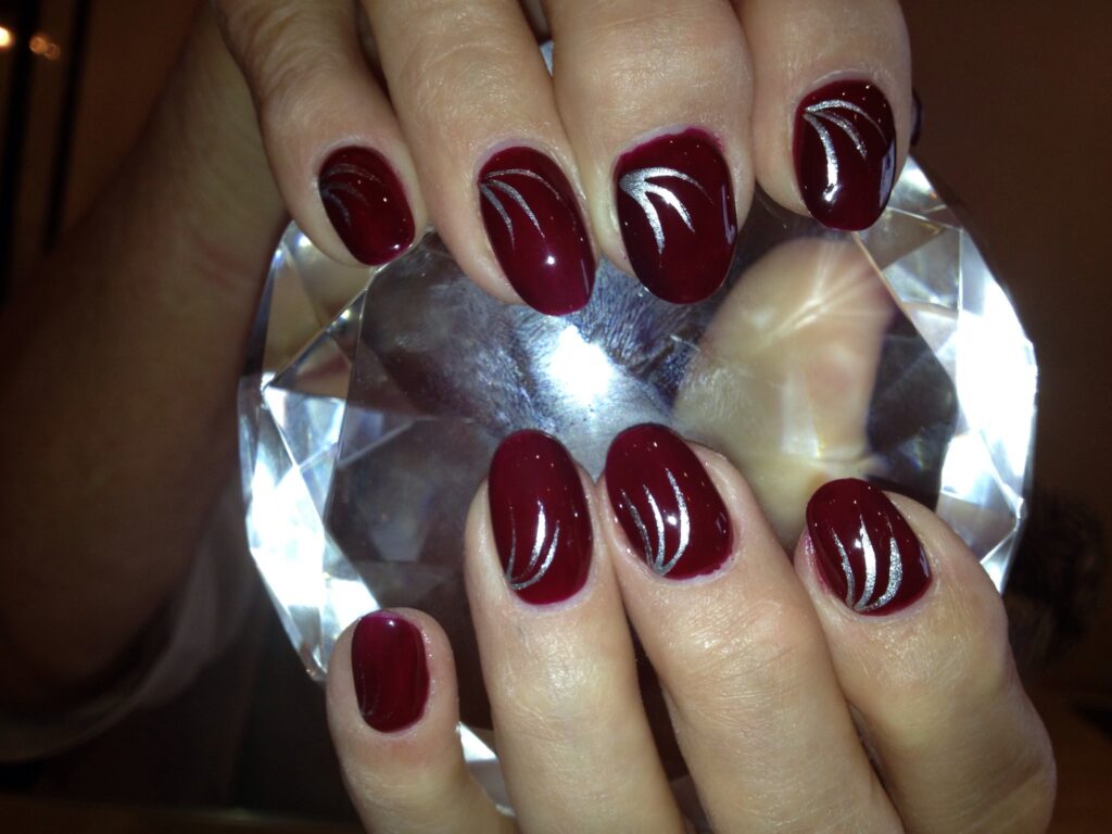 Deep burgundy is often linked with December because it mirrors the richness seen in winter clothing and evening settings. The shade looks especially good with wool coats, scarves, and darker outfits. It works well on both short and long nails, making it easy to maintain during busy weeks. Many people choose this color for dinners, parties, and formal events. A glossy finish helps bring out its depth under warm indoor lighting.