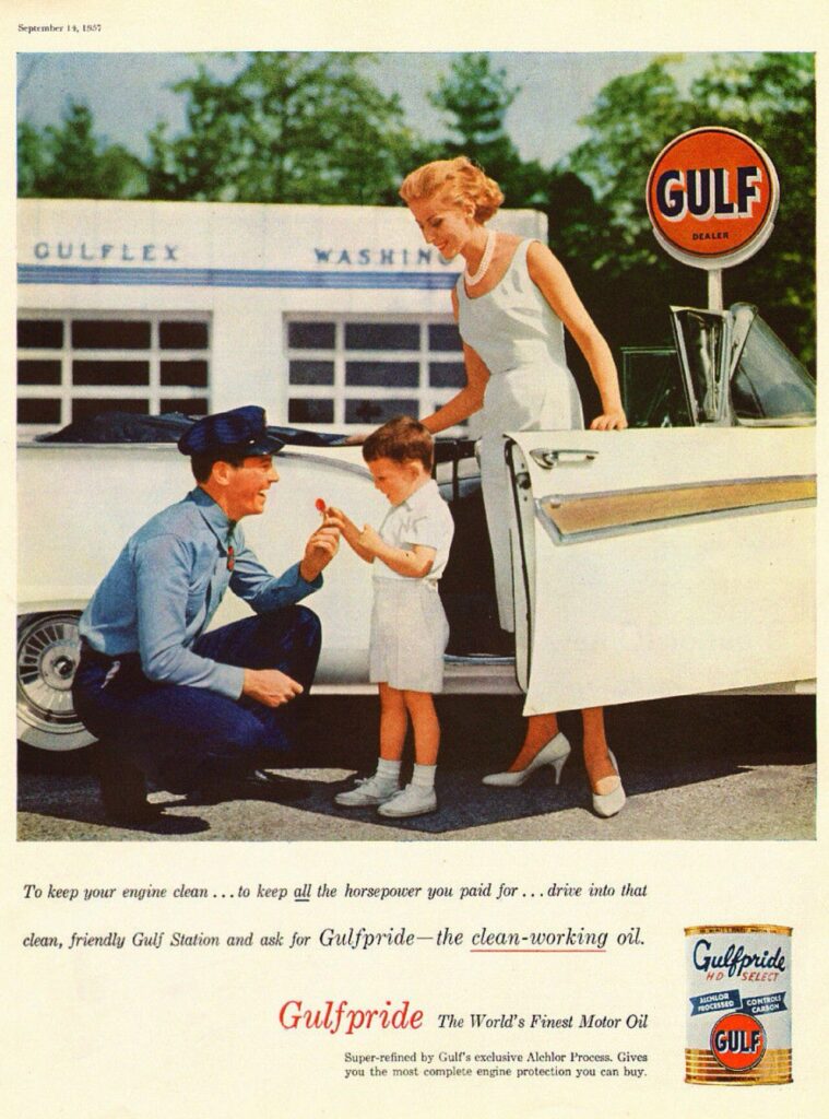 Gulf Oil, once a prominent gas station brand that eventually merged into Chevron, distributed promotional posters and pamphlets from the 1950s through the 1970s to attract customers. These printed materials often featured the company’s logo and fuel promotions. Surviving posters and pamphlets from Gulf Oil stations are now rare, especially as many were discarded when the company rebranded. Today, these items can be worth $20 to $100, depending on their condition. Collectors value them for their visual history and connection to a time when Gulf Oil was a major part of the American service station landscape.