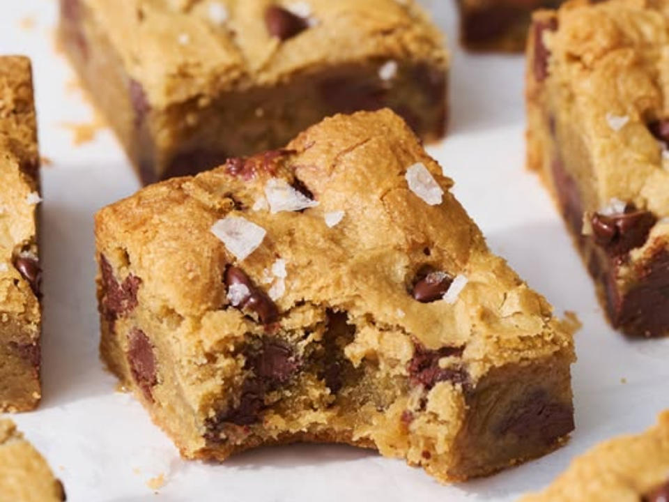 To make them, stir 3/4 cup melted butter with 1 1/2 cups brown sugar in one bowl, then mix in 2 large eggs and 2 teaspoons vanilla extract. Add 1 1/2 cups all-purpose flour, 1 teaspoon baking powder, 1/2 teaspoon salt, and 1 cup chocolate chips, then fold until combined. Spread the batter into a lined 9 x 9 pan and bake at 350°F for 25 to 30 minutes. Let the blondies cool fully before cutting so the bars keep their soft center and neat shape.