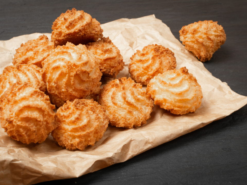 In one bowl, stir together 3 cups sweetened shredded coconut, 1/2 cup granulated sugar, 2 large egg whites, 1 teaspoon vanilla extract, and 1/4 teaspoon salt until the mixture is well coated. Scoop small mounds onto a lined baking sheet, pressing them lightly so they hold together as they bake. Bake at 325°F for 18 to 22 minutes, until the edges look lightly golden. Let them cool fully, then drizzle with 1/2 cup melted chocolate if you want a richer finish.