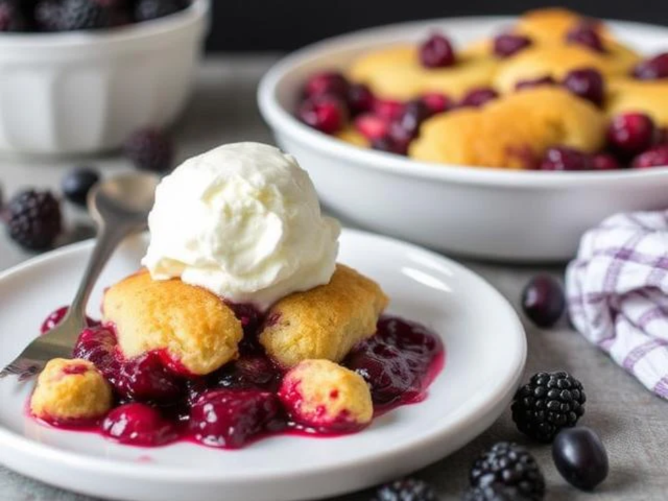 To prepare it, place 2 cups mixed berries in a greased 8 x 8 baking dish and sprinkle them with 2 tablespoons sugar. In one bowl, mix 1/2 cup melted butter, 3/4 cup sugar, 1 cup all-purpose flour, 1 teaspoon baking powder, 1/4 teaspoon salt, 3/4 cup milk, and 1 teaspoon vanilla extract until smooth. Pour the batter over the berries and bake at 350°F for 35 to 40 minutes, until the top looks lightly golden and the fruit is bubbling. Let it cool for 10 to 15 minutes before serving so the filling thickens a bit.