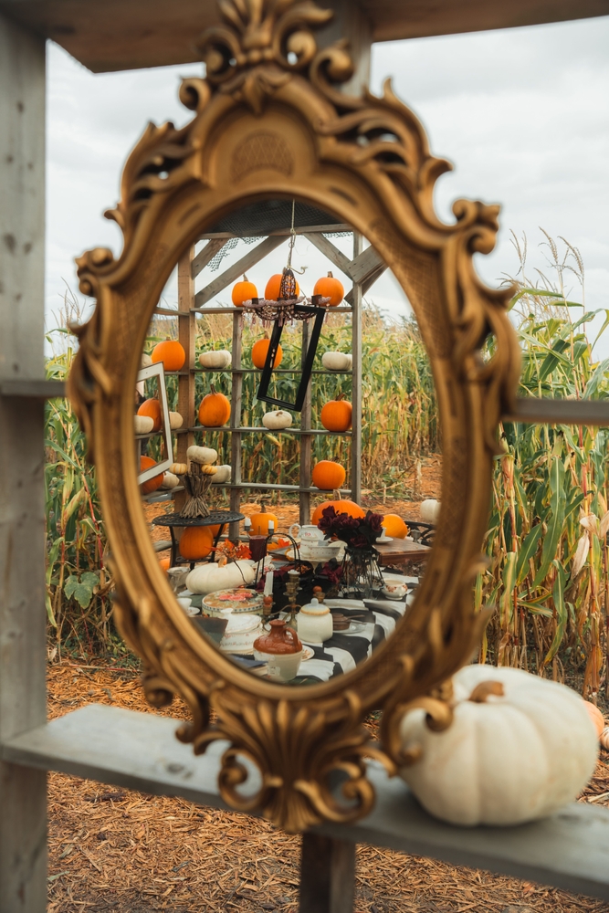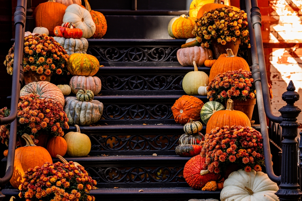 Transform your front porch or yard with a spooky vignette made of pumpkins, faux crows, and cornstalks. Begin by arranging several pumpkins of varying sizes, colors, and shapes to create a natural focal point. You can use real pumpkins, or for a longer-lasting display, go with faux ones. Surround the pumpkins with cornstalks or hay bales to add texture and give the arrangement a more authentic fall look. To make it extra eerie, place a few faux crows perched on the pumpkins or around the scene.