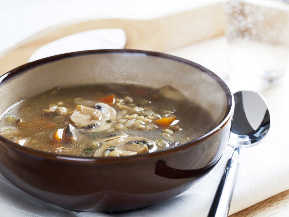 Rinse a half cup of pearl barley. In a large pot, heat 2 tablespoons of oil, cook 1 diced onion, 2 diced carrots, and 2 diced celery stalks for 5 minutes, then add 2 cups of sliced mushrooms and cook another 5 minutes. Add 3 minced garlic cloves, the barley, 6 cups of water or broth, 1 teaspoon of dried thyme, 1 teaspoon of salt, and a half teaspoon of black pepper, then simmer for 30 to 35 minutes until the barley is tender, stirring from time to time. Taste and adjust seasoning before serving.