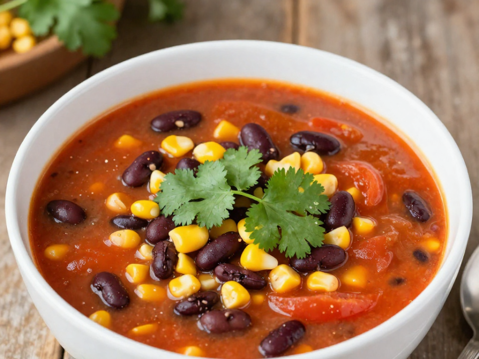 This black bean and corn soup feels hearty thanks to the beans, which give every bite real substance. Corn adds sweetness and crunch, while tomatoes create a bright base. Pantry cans make it easy to throw together when money and time are tight. It works well on its own or ladled over rice.