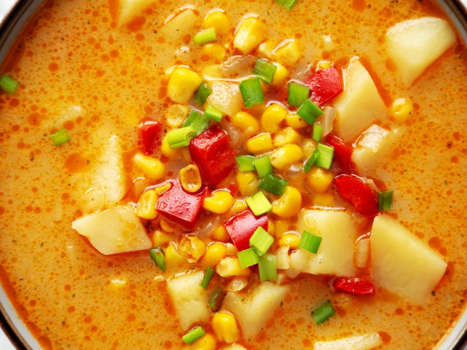 Corn and potato chowder with bacon feels rich and hearty, with sweetness from the corn and creaminess from the potatoes. Bacon pieces add smoky flavor that spreads through the whole pot. The texture sits somewhere between soup and stew, which makes it very filling. It is great for lunch or dinner on a chilly day.