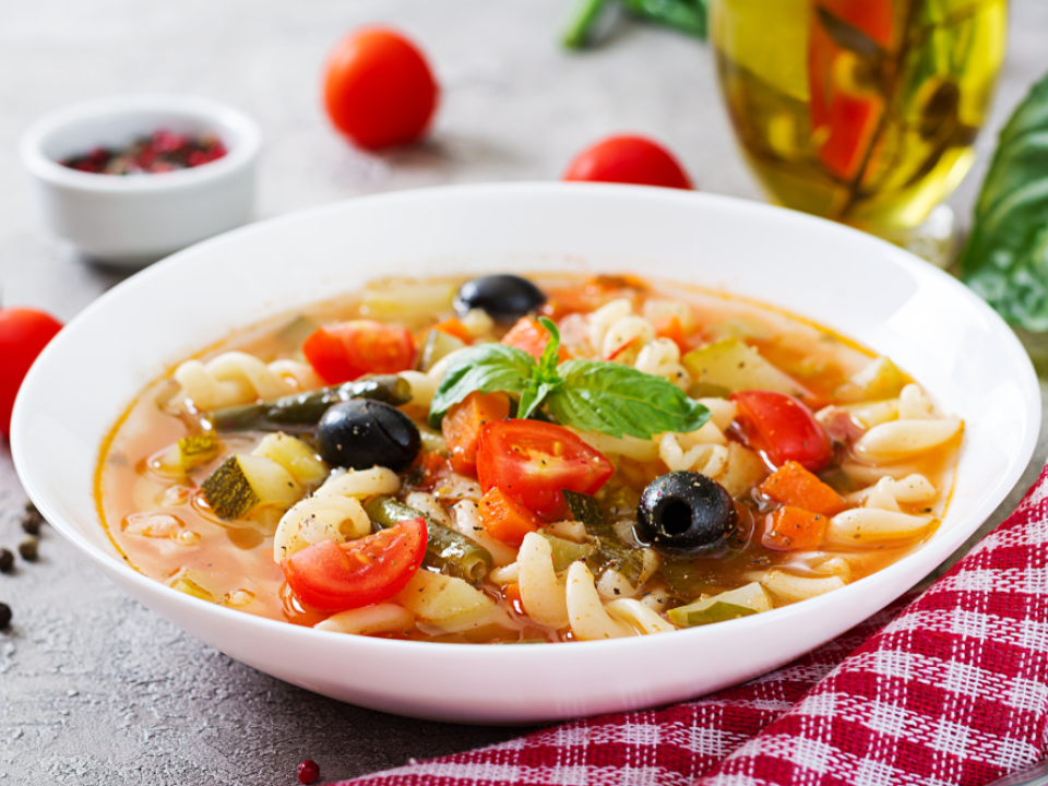 This simple minestrone style soup turns vegetables, pasta, and beans into a big, satisfying pot. The broth thickens slightly from the pasta starch and feels comforting. Beans add protein, while vegetables keep each spoonful colorful and fresh. It is an easy way to use small amounts of produce.
