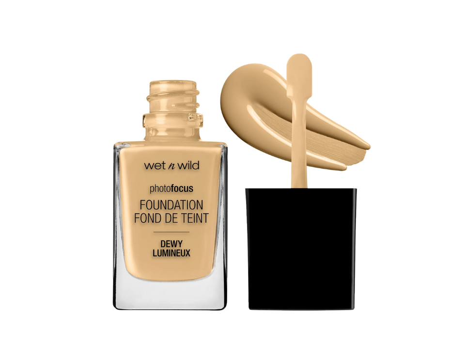 Lightweight and glowy, Wet n Wild Photo Focus Dewy Foundation is a budget-friendly option that reads very skinlike. The base uses water, cyclopentasiloxane, and emollients such as C12 15 alkyl benzoate for slip, along with glycerin and humectants for moisture. Its thin, creamy texture allows it to spread easily and settle into a luminous finish. Many users find that it diffuses the look of pores and fine lines when applied in light layers.