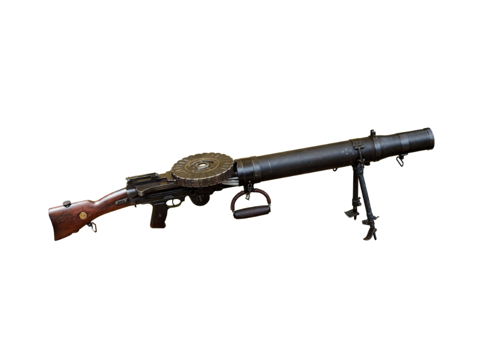 The Hotchkiss M1909, developed by the French, was one of the earliest successful light machine guns. It was designed to be a portable, squad-level weapon capable of providing automatic fire in a wide range of combat situations. The Hotchkiss M1909 was chambered in 8mm Lebel and featured a unique, belt-fed design that allowed for sustained fire.