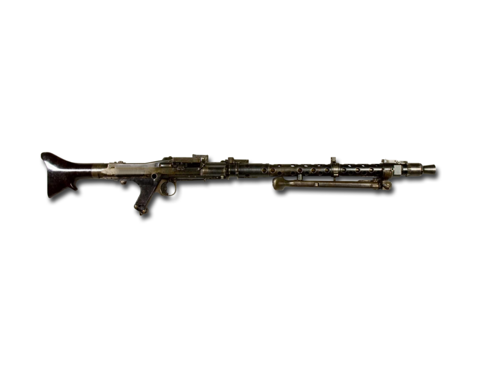 Introduced in 1934 by Germany, the MG34 was one of the first general-purpose machine guns, capable of being used in both light and heavy machine gun roles. It featured a high rate of fire, around 800 to 1,200 rounds per minute, and was used throughout World War II. The MG34 was designed for flexibility, with its quick-change barrel and ability to be mounted on vehicles or tripods, making it a versatile weapon in various combat situations.
