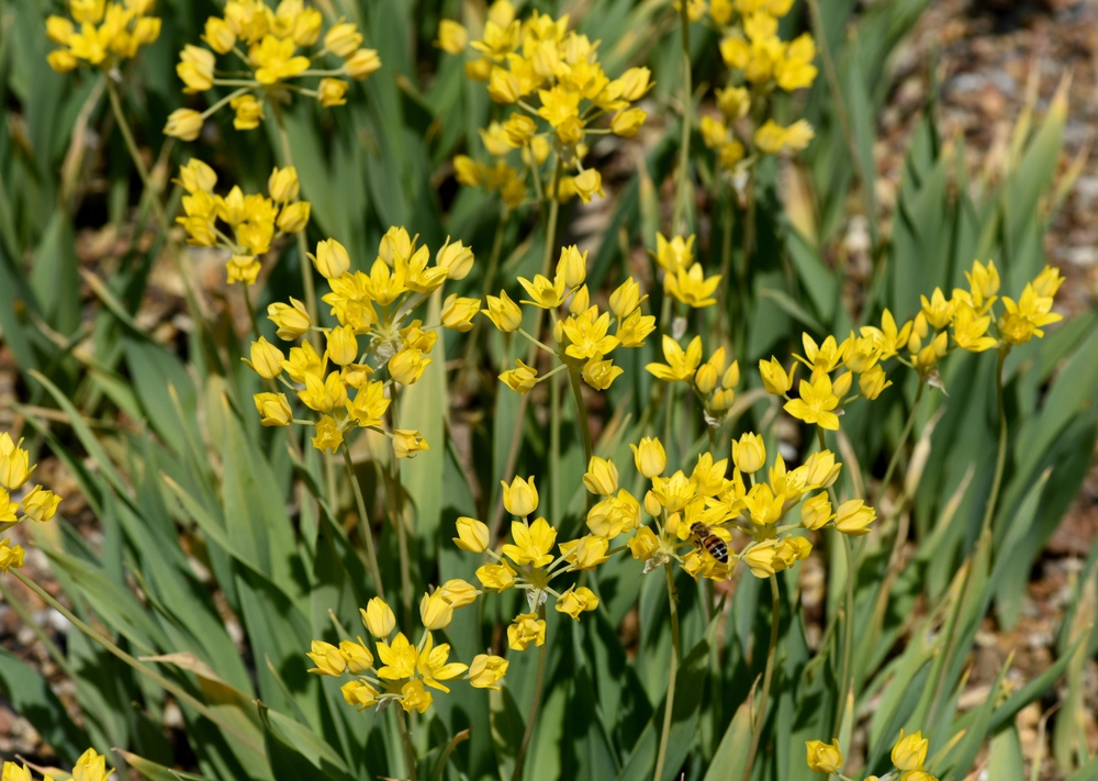Golden garlic bulbs should be planted in well-drained, slightly acidic soil with full sun exposure. These plants are low-maintenance and easy to grow, making them ideal for beginner gardeners. Once established, Allium moly will return year after year, adding its sunny yellow blooms to the garden. The cheerful flowers of Allium moly are one of the first signs of spring, brightening up the landscape.