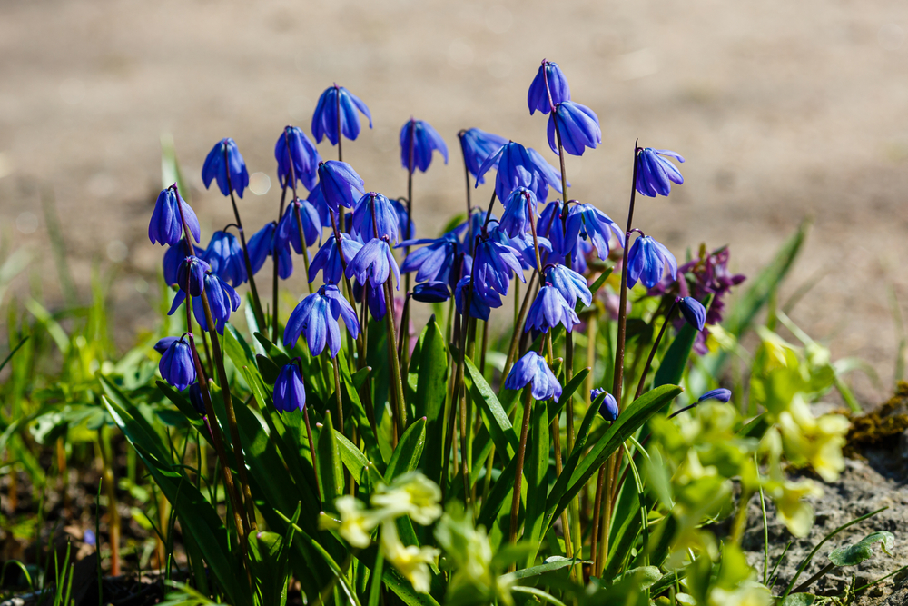 Scilla, or squill, is a small, early-blooming bulb known for its striking blue flowers. These delicate plants can pop through cold soil, often blooming while the ground is still chilly. Native to Europe and parts of Asia, Scilla species are well-suited to spring gardens where they can thrive in partial shade. Their vivid blue blossoms stand out in garden beds, creating a beautiful contrast with early spring greenery.