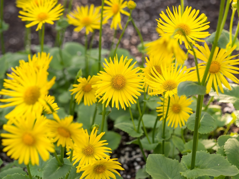 Leopard’s bane brings cheerful yellow daisy-like flowers to the garden early in the season. It blooms before a lot of other sunny perennials have really started moving, which helps spring beds look lively much sooner. The flowers rise above low clumps of green leaves and stand out well against tulips, forget-me-nots, and other early color.