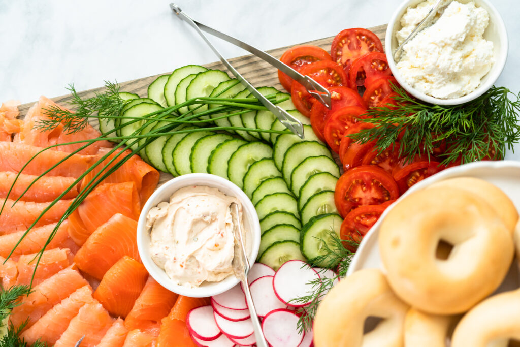 Smoked Salmon Bagel Boards With Cucumber, Dill, and Cream Cheese