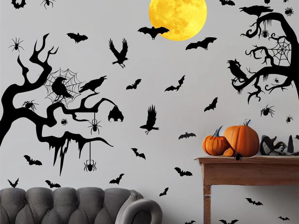 If you want to get creative, try using bat decals in different sizes for a layered look. For a more ghostly effect, you can mix in some white ghost-shaped decals alongside the bats. It’s a quick and inexpensive way to decorate a large space with minimal effort, and the best part is that they are easy to remove once Halloween is over.