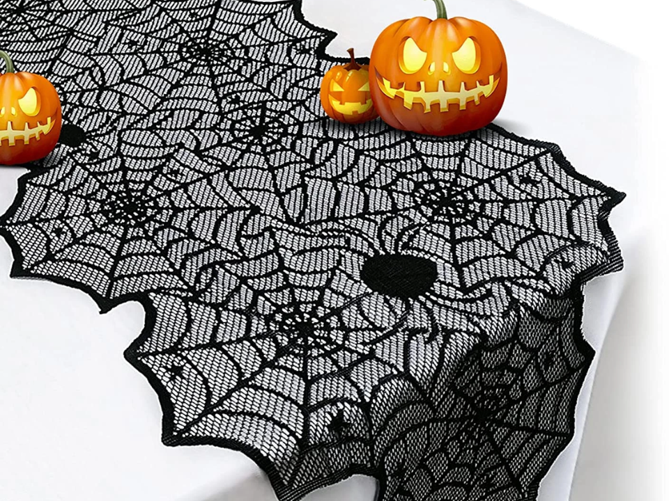 A cobweb table runner can turn your dining area into the perfect Halloween-themed spot. You can easily find pre-made cobweb-style runners or create your own using black fabric and some faux spider webs. Lay it down the center of your table to instantly create a spooky atmosphere.