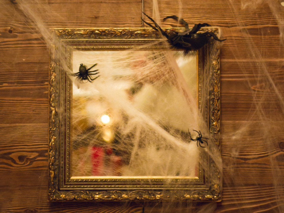 A haunted mirror is a fun and spooky way to get into the Halloween spirit without needing too many supplies. You can achieve this look by placing a sheet of dark tulle or gauze over a mirror to give it an eerie, foggy appearance. Adding some dim lighting behind the mirror enhances the ghostly effect, making it appear as though something is hiding within it.