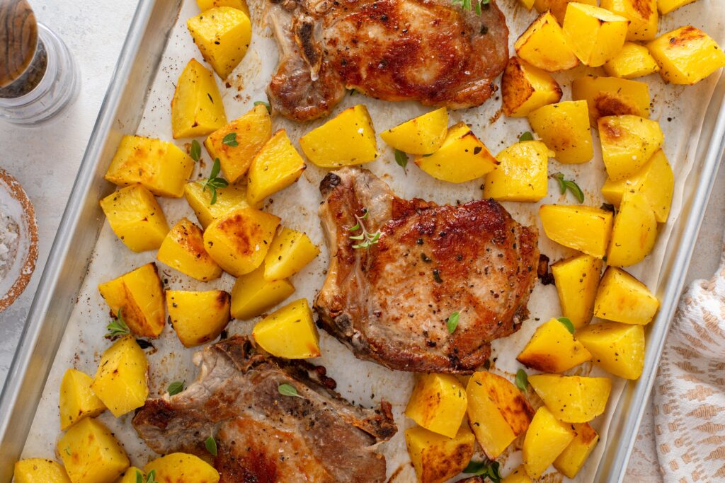 Sheet Pan Honey Mustard Pork Chops With Baby Potatoes