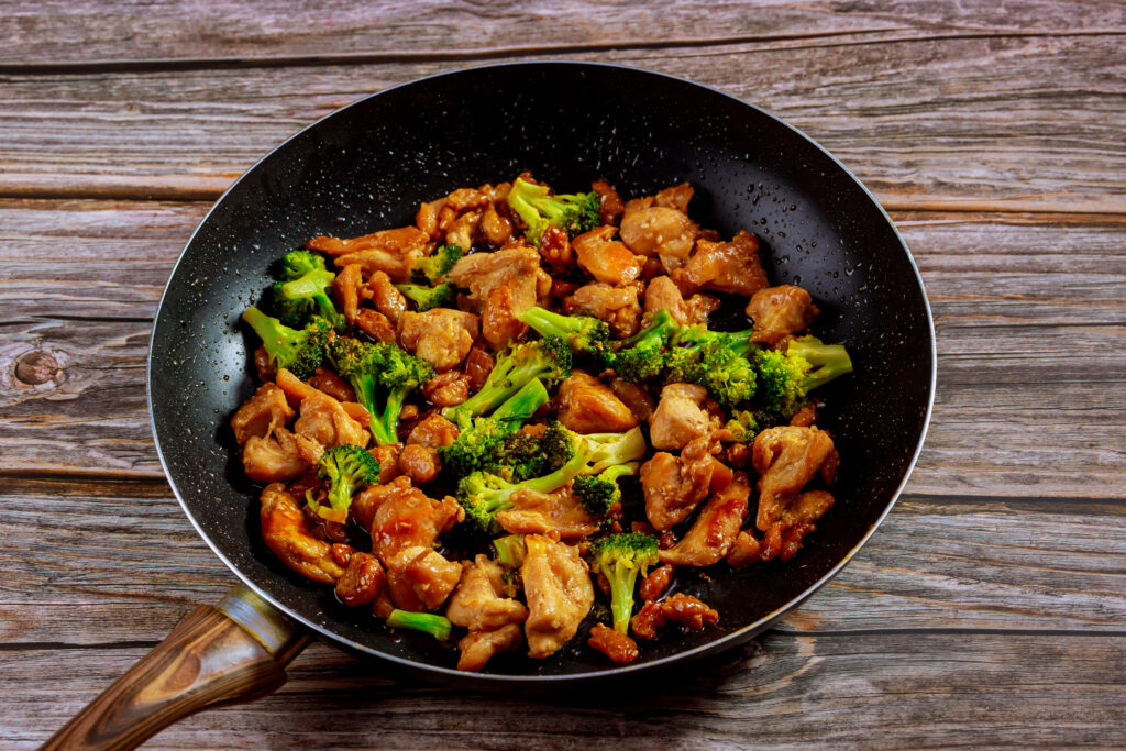 Prep time is about 15 minutes. Heat the oven to 425°F, whisk soy sauce, honey, vinegar, ginger, garlic, and the cornstarch mixture, then toss chicken with half the sauce on a sheet pan. Roast 12 minutes, then add broccoli and snap peas tossed with the remaining sauce, spreading everything into an even layer. Roast 12 to 15 minutes more until chicken is cooked through and the sauce looks glossy, then serve right away.
