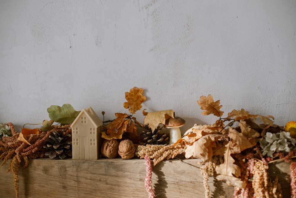 For a more refined look, choose garlands with a subtle design, such as simple string lights or dried leaves. This adds a soft touch of fall without overcrowding the space. A little garland goes a long way when it is thoughtfully placed.