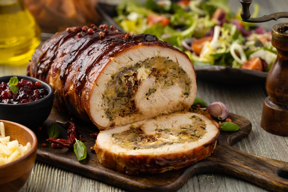 Stuffed turkey breast is a flavorful alternative to the traditional whole turkey, perfect for family gatherings. This dish allows for the juicy turkey breast to be filled with a savory stuffing, creating a rich and satisfying meal. It is much easier to prepare than a full turkey, and the stuffing adds an extra layer of flavor that everyone will love. This dish is ideal for holiday meals or any family occasion where you want to serve something special.