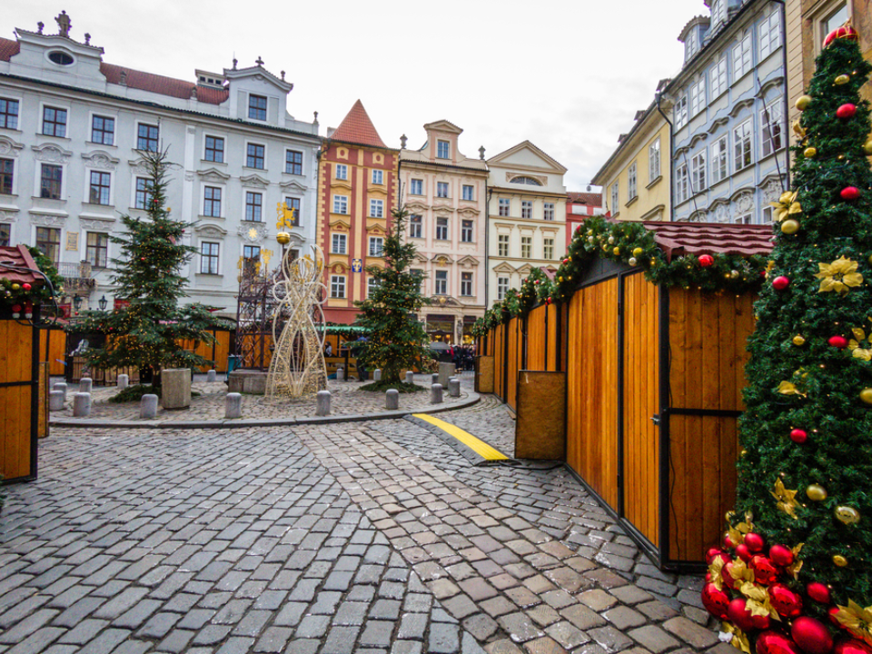 Cesky Krumlov feels calm and storybook like during the Christmas season. Snow often rests on rooftops, giving the town a soft winter look. The castle above the river adds drama to the seasonal setting. Streets remain quiet and easy to wander.