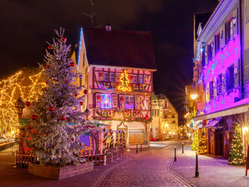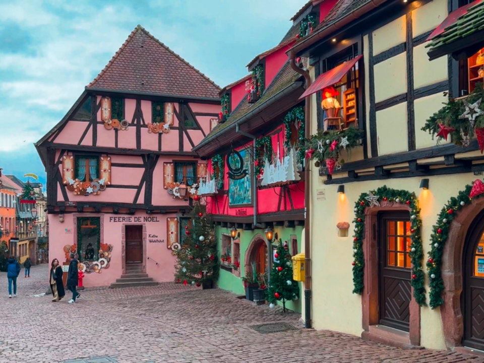 Eguisheim becomes especially charming during Christmas with its circular streets and colorful homes. Lights and decorations follow the curved layout, guiding visitors through the village. The scale feels intimate and easy to enjoy. Each turn reveals another festive detail.