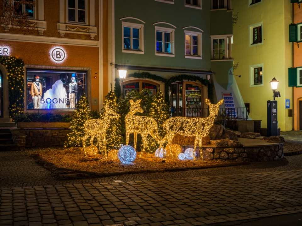 Kitzbuhel blends alpine scenery with a welcoming Christmas atmosphere. Snow covered peaks frame the town while lights brighten the historic center. The streets feel lively without becoming overwhelming. Winter air adds to the sense of seasonal comfort.