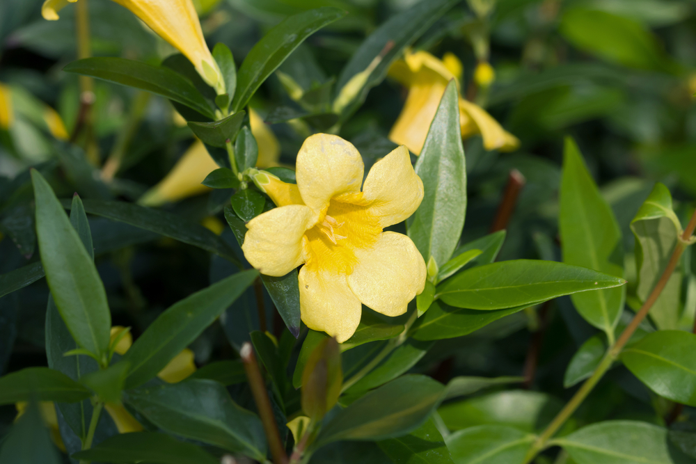 Despite being a slow starter, once it takes off, Carolina Jessamine continues to grow and bloom well into the fall. Its sweet scent and bold yellow flowers make it a favorite among gardeners who enjoy fragrant plants. Carolina Jessamine also attracts pollinators like bees and butterflies, making it a valuable addition to any garden. With minimal care, this vine can last for many years, offering both beauty and fragrance long after summer.