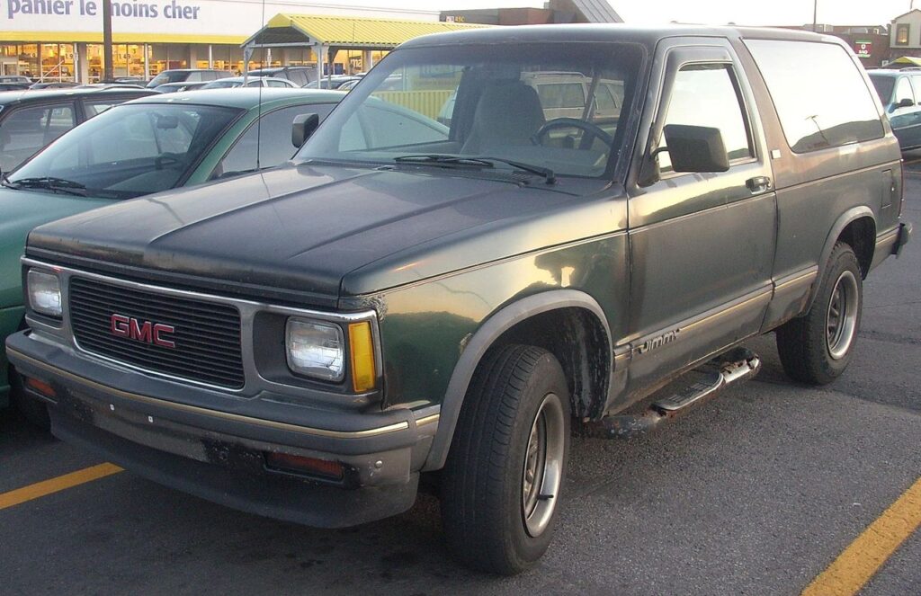 The two-door GMC Jimmy was the Blazer’s sibling, sharing its size and rugged character. It was stylish for its day, with bold trim and practical powertrains that could handle rough conditions. Though smaller than later SUVs, it delivered the toughness drivers expected from GMC. Many families used them for camping trips and small-town errands alike.