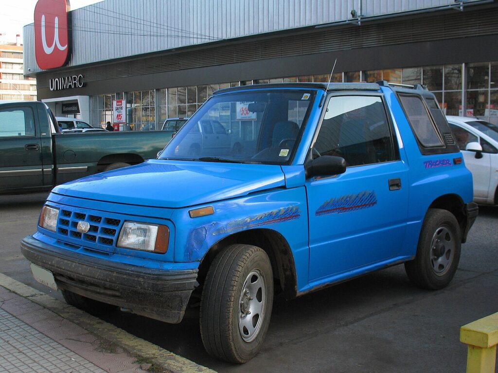 The Geo Tracker brought affordable fun to the SUV market in the late 80s and 90s. Built with Suzuki engineering, it was small, nimble, and surprisingly capable on trails. Many were sold as cheerful convertibles, giving them a playful summer vibe that appealed to young buyers. The Tracker may not have had fancy features, but it was reliable and easy to maintain.