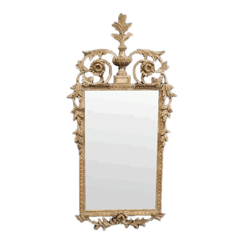 The Empire Giltwood Mirror, produced during the early 19th century, reflects the grandiose style favored by Napoleon Bonaparte’s court. The design typically features bold, clean lines with decorative motifs like eagles, laurel wreaths, and medallions. These mirrors, often found in palatial estates, were designed to convey power and elegance. The current market value for Empire mirrors ranges from $7,000 to $20,000, depending on their size, design, and condition. Their historical significance, coupled with their bold design, makes them highly coveted by collectors.