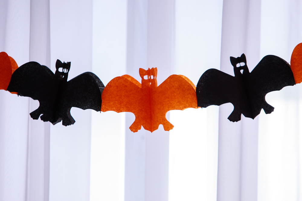 Add a touch of Halloween spookiness to your front door with hanging bats. These can be made from foam, paper, or fabric and hung from the ceiling or doorframe. They create a fun, eerie atmosphere when fluttering in the wind or blowing slightly. You can hang them in clusters or scatter them around your entryway.
