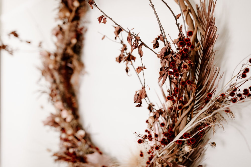 A dried flower wreath is a timeless fall centerpiece that captures the beauty of the season. You can use a variety of dried flowers like marigolds, zinnias, and strawflowers, mixed with sprigs of herbs such as sage and oregano. This wreath can be placed on the table or hung on the wall to bring a touch of nature indoors. The mixture of textures from the herbs and flowers adds visual interest and color.