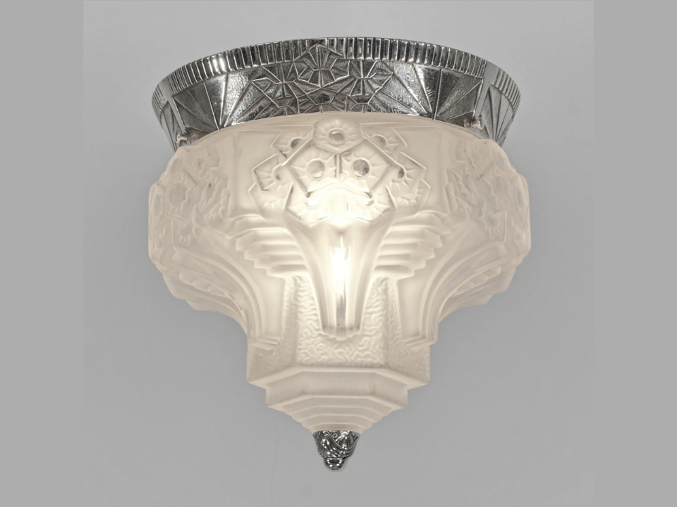 Geometric Art Deco lighting designs are a stunning way to add elegance and timeless beauty to any space. Known for their bold shapes, intricate patterns, and luxurious materials, these fixtures reflect the sophistication of the 1920s and 1930s. Whether it’s a chandelier, pendant, or wall sconce, each piece showcases the unique style of the Art Deco period. The clean lines, symmetrical designs, and use of frosted glass create a captivating visual effect that enhances any room. Art Deco lighting not only illuminates a space but also serves as a statement piece, blending both function and art. From iconic designers like Georges Leleu to unique vintage finds, these lights remain highly sought after by collectors and design enthusiasts.