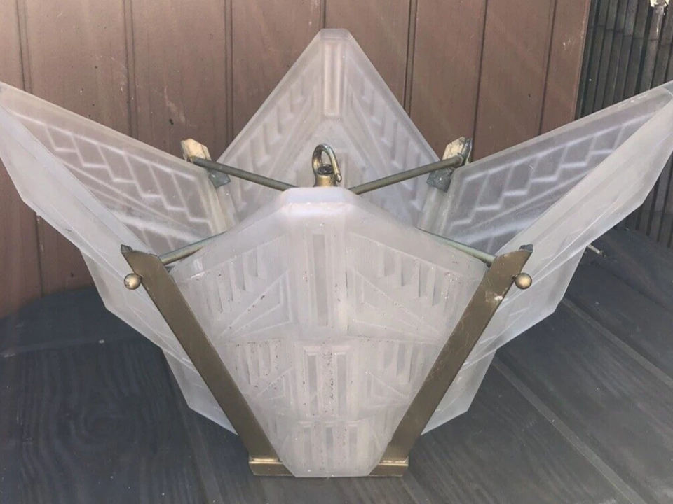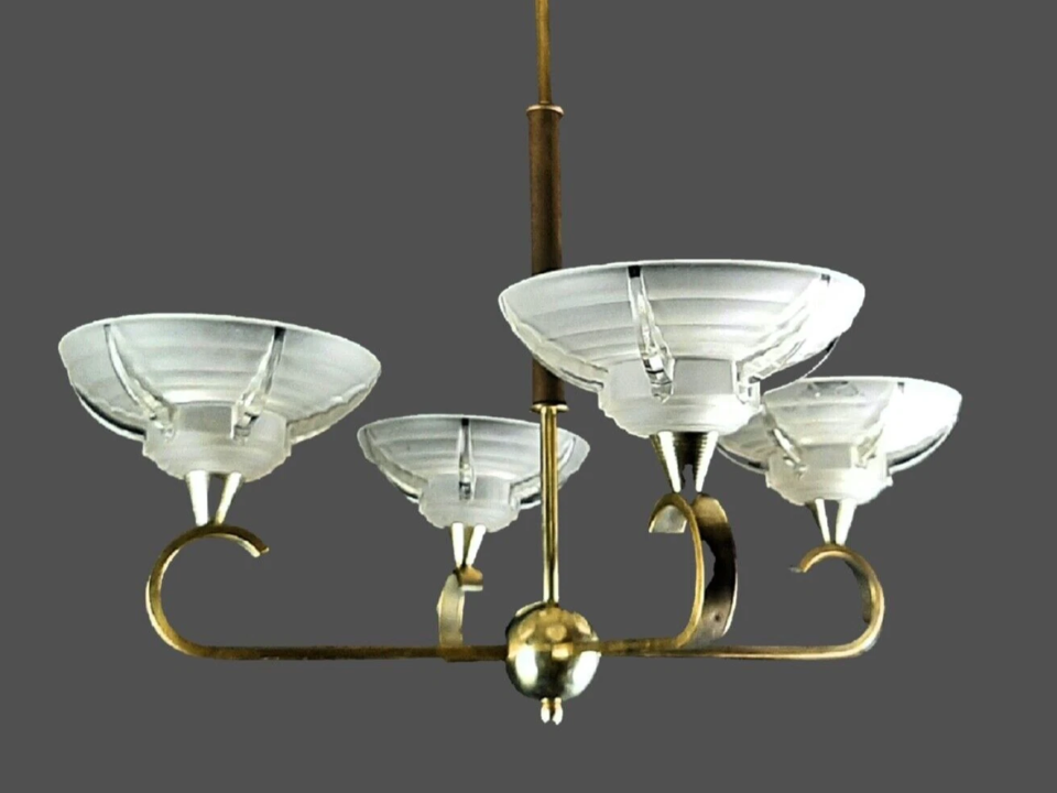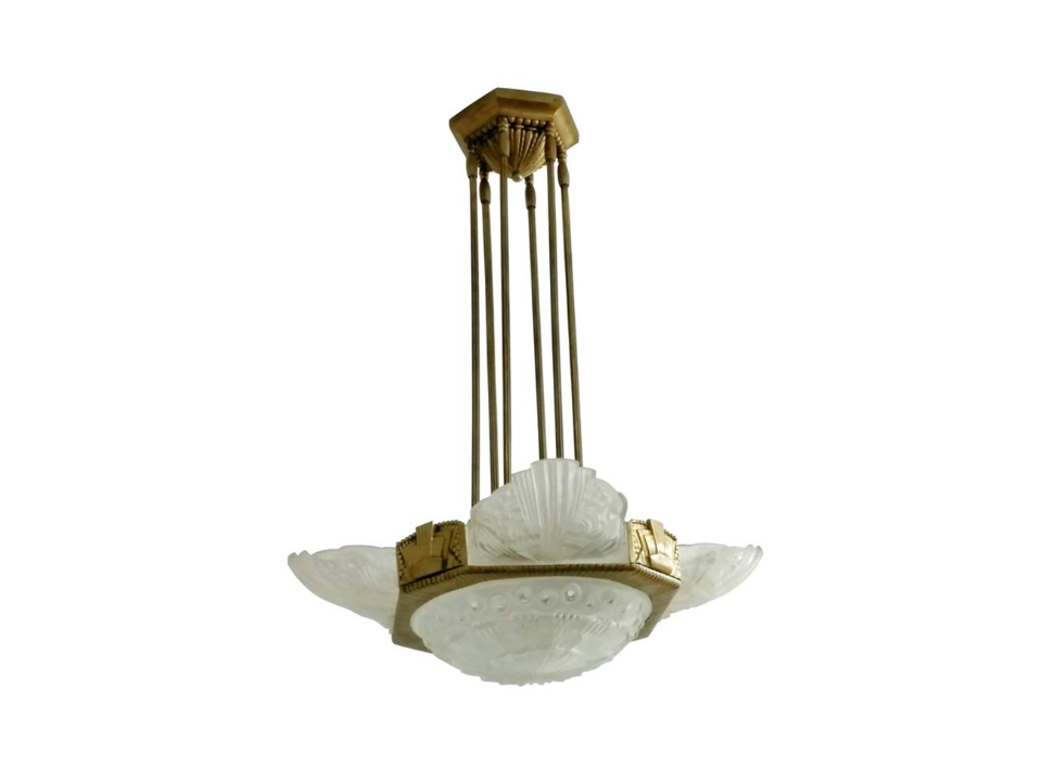 French Art Deco Geometric Chandelier Signed by Des Hanots