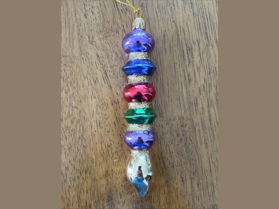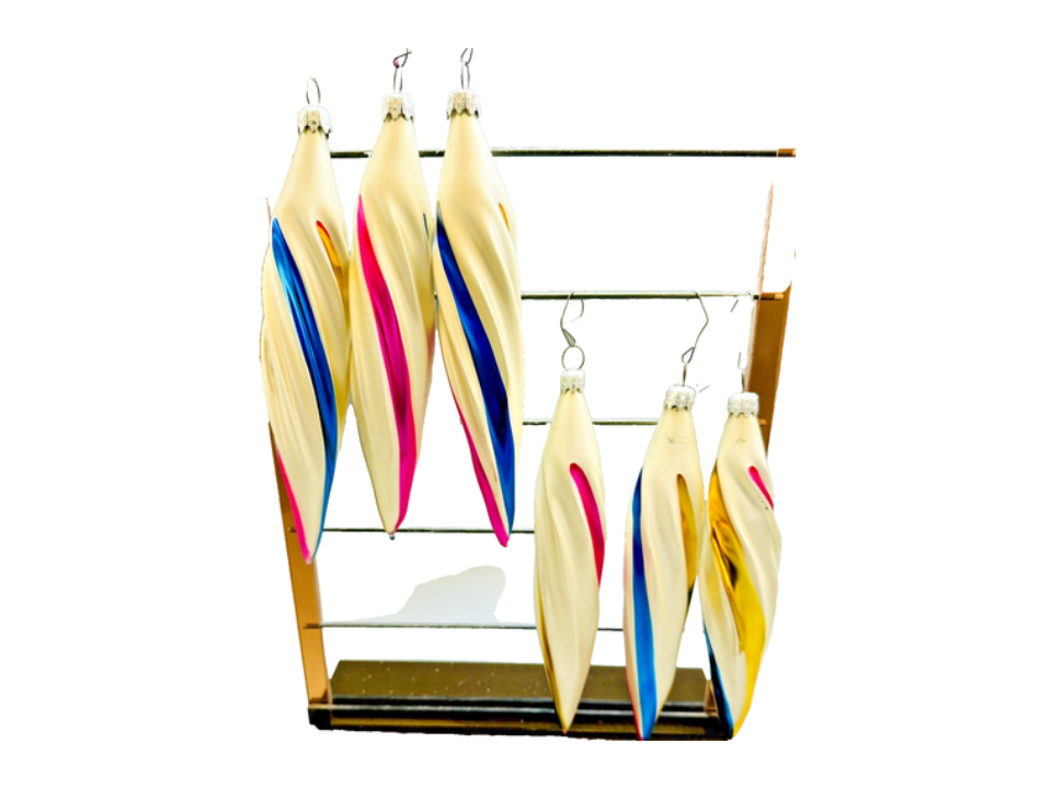 This ornament takes inspiration from Venetian glass traditions where artisans twist molten glass into fine tapering forms before cooling. The result is a graceful shape with a nearly transparent body and occasional faint bubbles trapped inside glass that hint at hand‑made origin. Light passing through gives a spectral glow that many hang as part of vintage or themed tree displays.