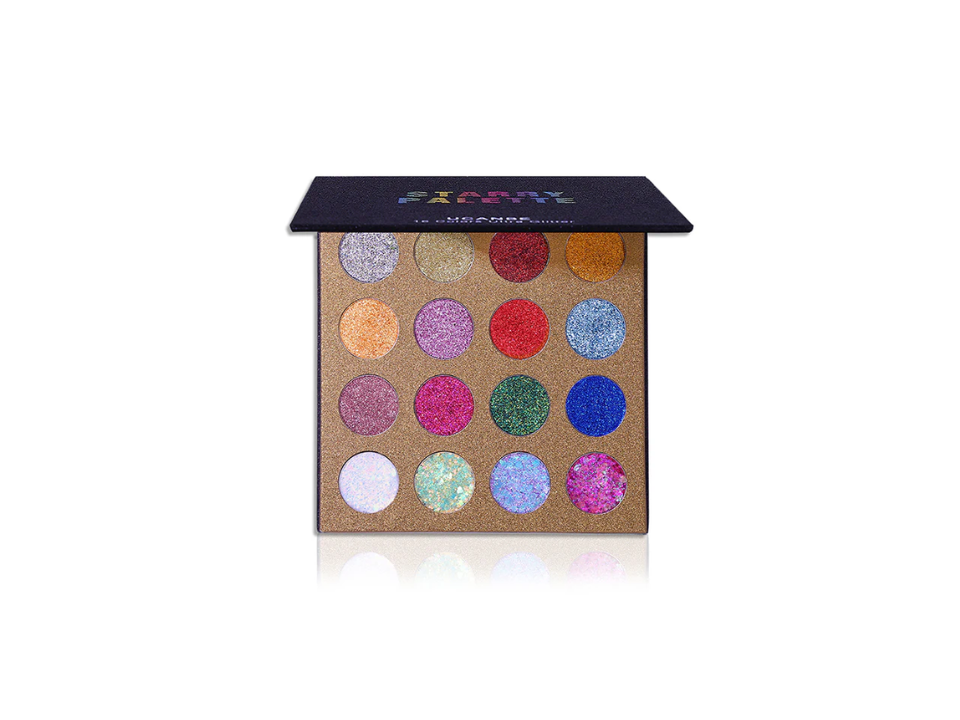 This palette includes both fine shimmer and chunkier glitter finishes giving flexibility in how dramatic your holiday look becomes. The 16 shades offer a mix of metallics, glitters and shimmer tones so you can tailor your eye makeup from elegant glow to bold shine. The pressed powder formula stays in place well and avoids excessive fallout which is often a concern with glitter products.