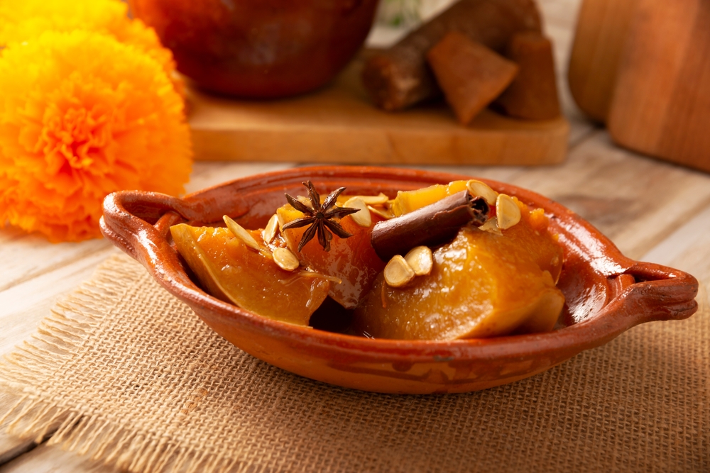 Candied pumpkin is a classic bowl dessert for Day of the Dead, and it works for at-home serving since the syrup can be spooned over each wedge. Cinnamon and citrus peel perfume the syrup while the pumpkin turns tender and glossy.