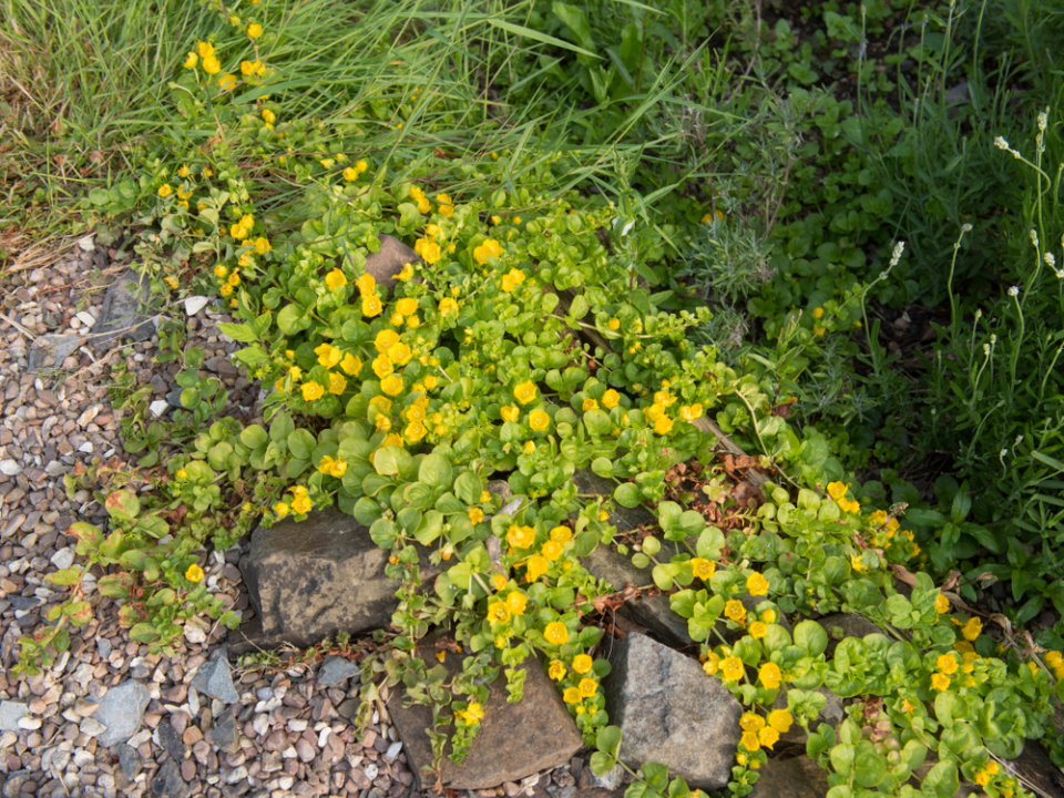 This plant works well in shaded or woodland gardens, as it thrives in areas with limited sunlight. Once established, brass buttons is tolerant of dry conditions, making it a low-maintenance choice for shaded spots. Its ability to spread quickly and cover large areas makes it ideal for filling in gaps between other plants or around steppingstones.
