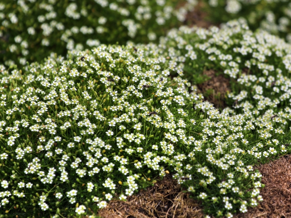 The tiny, white flowers that bloom in late spring to early summer add a delicate touch to this low-maintenance ground cover. Irish moss can tolerate light foot traffic, although it is best to avoid heavy use in garden beds. The fine texture and vibrant green color of this ground cover make it a lovely addition to shaded or woodland gardens.