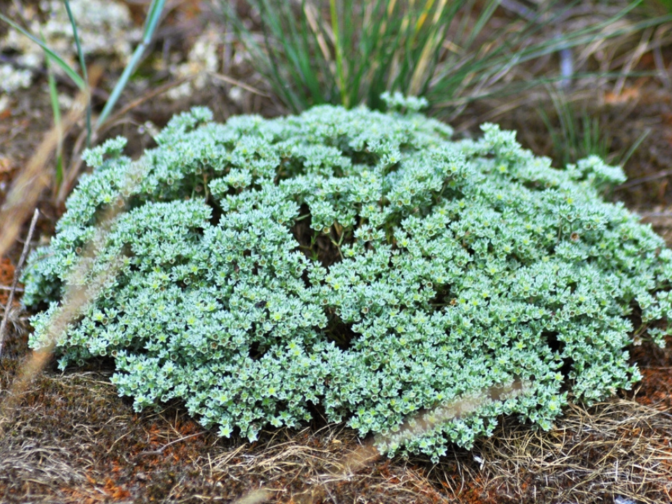 Woolly thyme produces small, pink or purple flowers in late spring or early summer, which attract pollinators. It is an excellent option for areas with foot traffic, as it can withstand light use without being damaged. The compact nature of woolly thyme makes it a great filler plant for between stones or in garden beds. Its ability to spread quickly and fill in gaps makes it a useful addition to any garden.