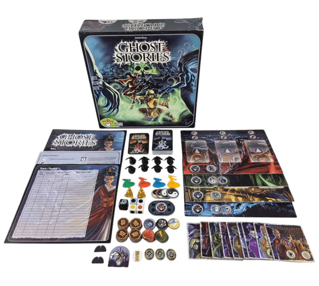 Released in 2008 by Repos Production, this cooperative tower defense-style board game challenges players to protect a village from invading ghosts. It features rich Asian folklore, bringing variety to Halloween collections. The colorful art and unique mechanics create a tense, engaging experience. Its difficulty level keeps even experienced gamers on their toes. The market value sits around $40 to $55.